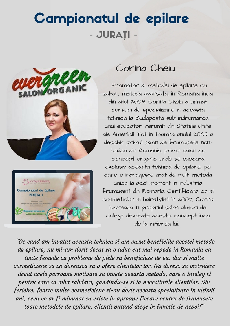 Promotor al metodei de epilare cu zahăr, metoda avansată, în România încă din anul 2009, Corina Chelu a urmat cursuri de specializare în această tehnică la Budapesta sub îndrumarea unui educator renumit din Statele Unite ale Americii.